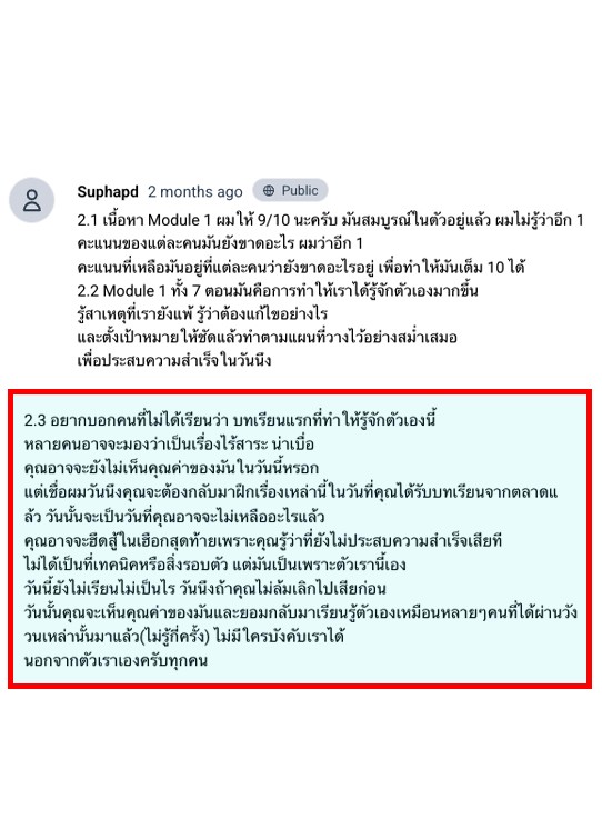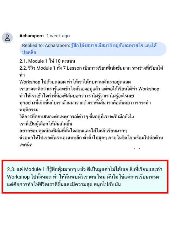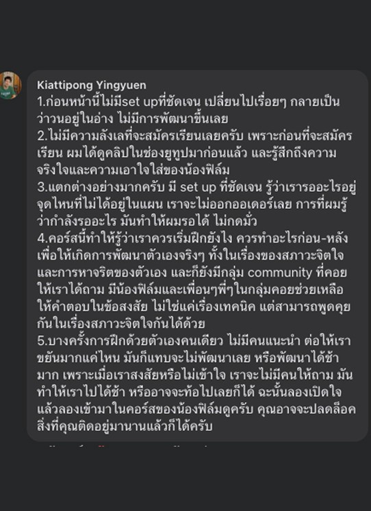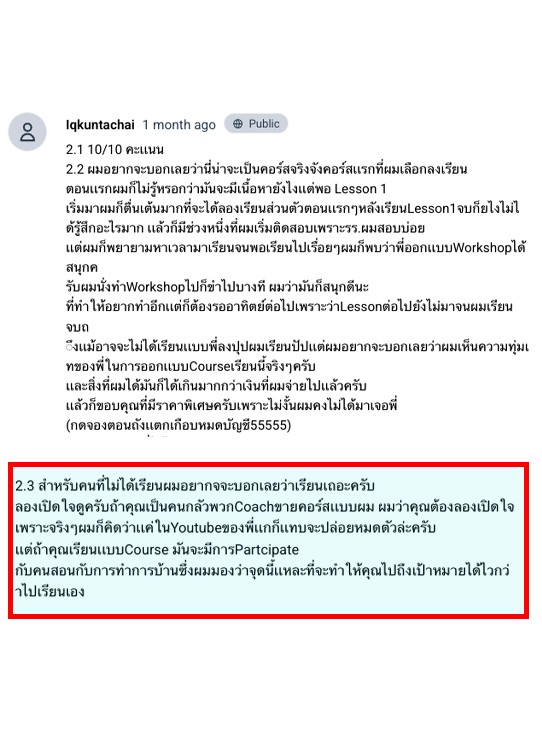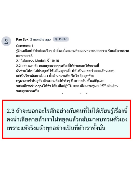 ผู้เรียนท่านหนึ่ง ที่ไม่สะดวกออกนาม