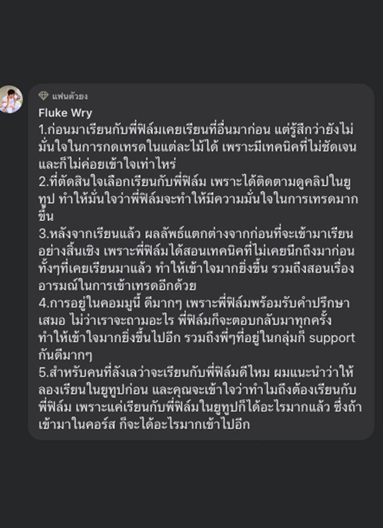 คุณจะมีผมอยู่ข้างๆ ให้ถาม ให้ช่วยคิด และมี Community ของเพื่อนเทรดเดอร์ที่กำลังสู้ไปกับคุณเหมือนกัน